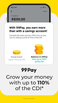 99 is the biggest Brazilian e-hailing app. Our mission is to revolutionize mobility and transform people's lives. With few taps, you can request a car or taxi and also decide how you pay for it, whether it's with cash or straight in the app, where you'll have access to exclusive promotions!