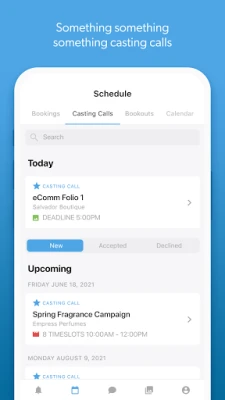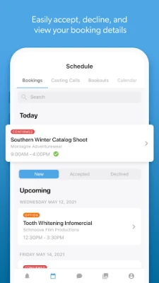 Accept and view upcoming bookings, manage your calendar, create a bookout, upload photos and videos to your gallery, and chat with your agent in real-time via our messenger.