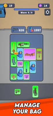 Bag management gameplay: Fit, place, and connect your troops and weapons.
