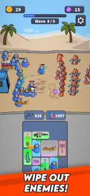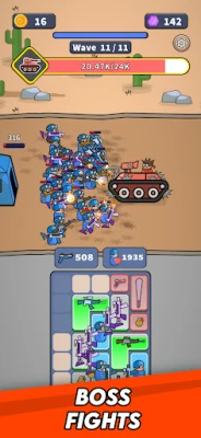 Place your soldiers and weapons inside your battle bag. Line them up, connect them right, and create your unstoppable army. Every weapon linked to a soldier brings them to life — rifles, shotguns, SMGs, you name it!