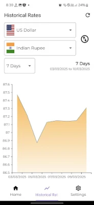 10- User can see, Historical rates of one currency against another currency for Last 7 Days, 15 Days, 30 Days, 45 Days etc.