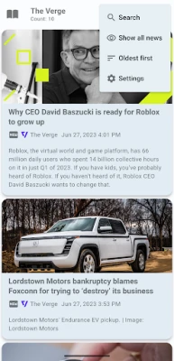 Dark Mode: Flux News has a material design inspired look in either light or dark themes.