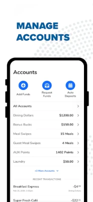 For colleges and universities: One app does it all! GET allows you to manage funds, make purchases, order food, make dining reservations, and earn rewards. You can also use NFC access to open doors, purchase from vending machines, or pay for your laundry. You can use GET just like you use a plastic ID card.