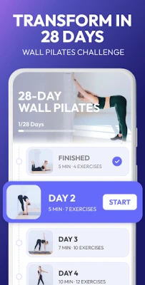 Wall Pilates uses a wall for support and resistance. Our plan is low-impact, beginner-friendly and perfect for women's fitness needs. From belly workout to full-body toning, our wall Pilates app is every woman's top choice. Ready? Let's go!