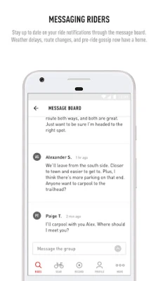 If you enjoy riding with others, you can join and create group rides in the Ride app. The group message board lets you communicate with riders who’ve joined the ride and keeps everyone informed.